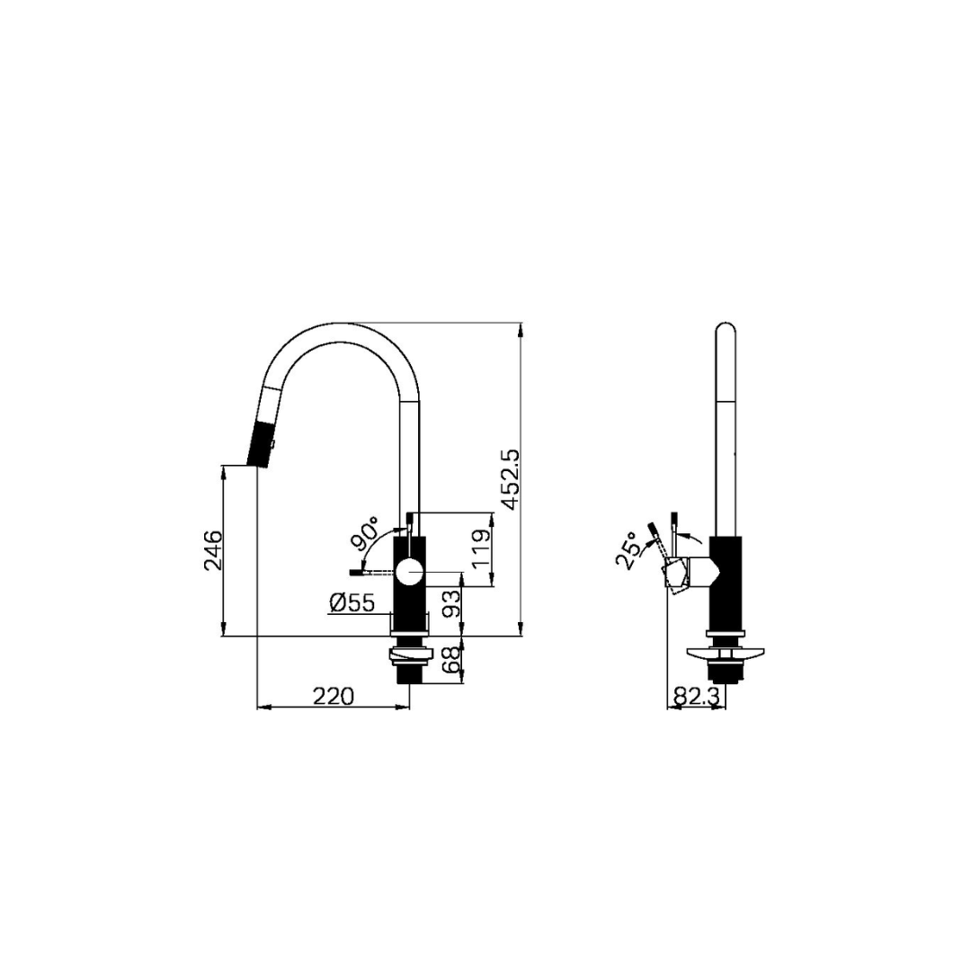 Keukenkraan Valencia – Uittrekbaar met sprayfunctie – Graphite